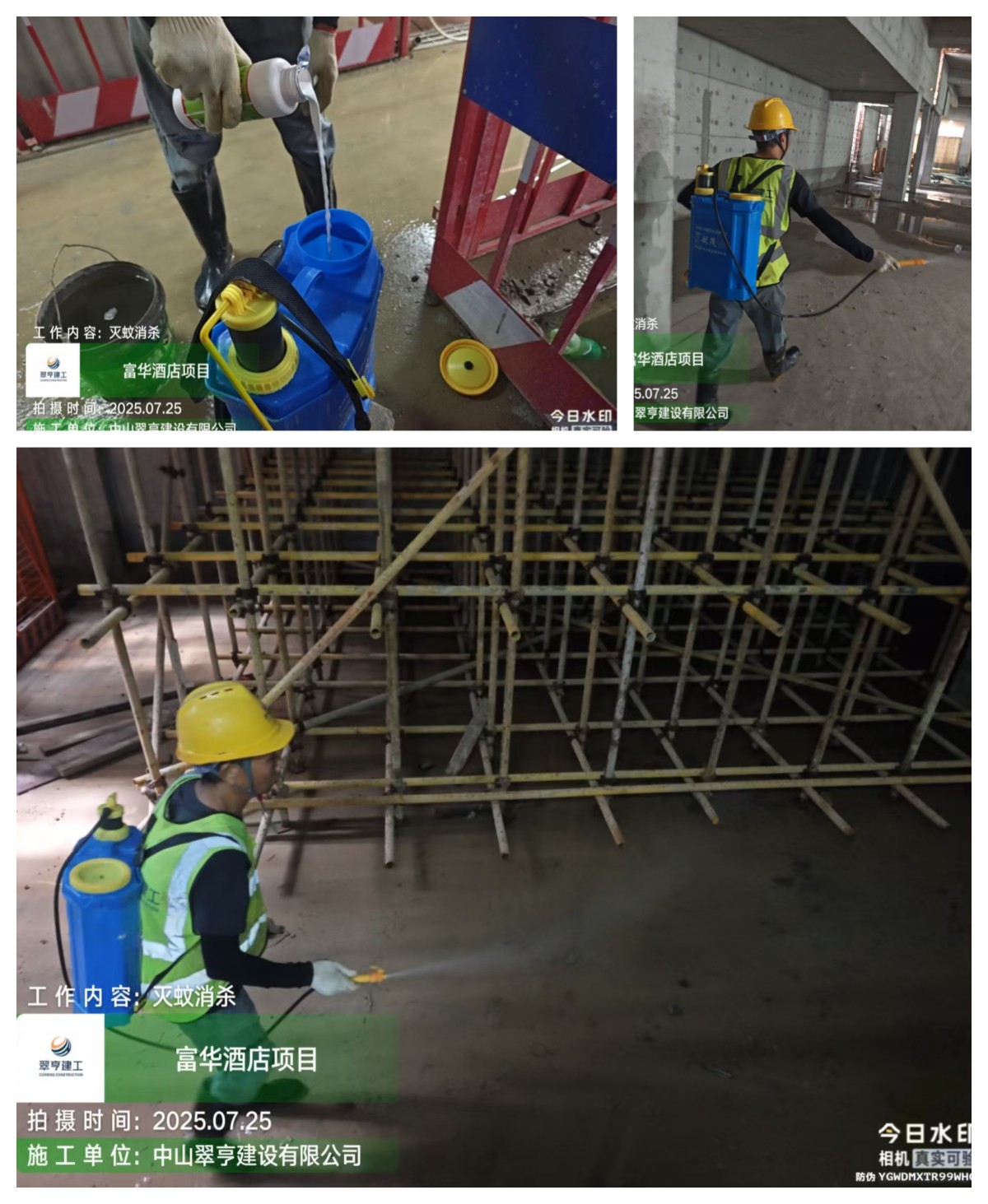 富華酒店強化消殺切斷蚊蟲孳生鏈條,對中山游藝智造園、富華酒店改造工程等重點區(qū)域開展針對性消殺工作,累計開展5場次。同時,酒店嚴格落實工地環(huán)境精細化管理要求,從源頭遏制蚊蟲孳生:一是定期組織清理工地積水,重點排查基坑、物料堆放區(qū)、臨時排水溝等易積水區(qū)域,確保無積水殘留;二是規(guī)范物料堆放,避免因物料隨意堆放形成積水死角,從源頭減少蚊蟲孳生環(huán)境。